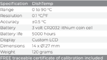 {"id":6062402764959,"title":"DishTemp Blue, Dishwasher Thermometer with Bluetooth LE","handle":"dishtemp®-dishwasher-thermometer","description":"\u003ch3\u003e\u003cspan style=\"text-decoration: underline;\"\u003eDescription\u003c\/span\u003e\u003c\/h3\u003e\n\u003cul\u003e\n\u003cli\u003eSimulates maximum plate surface temperatures\u003c\/li\u003e\n\u003cli\u003eFREE traceable certificate of calibration\u003c\/li\u003e\n\u003c\/ul\u003e\n\u003cp\u003eThe DishTemp thermometer simulates a plate as it’s cleaned and sanitised in a commercial dishwasher, accurately recording the maximum surface temperature at the touch of a single button, eliminating the need for costly and inaccurate test strips and stem thermometers that do not stay in place or record the surface temperature of a plate.\u003cbr\u003e\u003c\/p\u003e\n\u003cp\u003eThe instrument indicates temperature over the range of 0 to 90 °C with a resolution of 0.1 °C\/°F and an accuracy of ±0.5 °C. Incorporating a durable water-tight seal, the DishTemp thermometer is waterproof to IP66 and is supplied complete with a FREE one point (71 °C )traceable certificate of calibration.\u003c\/p\u003e","published_at":"2021-01-06T09:54:08+02:00","created_at":"2021-01-06T09:46:43+02:00","vendor":"SelectTechWesbite","type":"Agriculture","tags":["Dishwasher Thermometer","Thermometer","Thermometer with Bluetooth LE","Thermometers","WATERPROOF THERMOMETER"],"price":0,"price_min":0,"price_max":0,"available":true,"price_varies":false,"compare_at_price":null,"compare_at_price_min":0,"compare_at_price_max":0,"compare_at_price_varies":false,"variants":[{"id":37476685447327,"title":"Default Title","option1":"Default Title","option2":null,"option3":null,"sku":"","requires_shipping":true,"taxable":true,"featured_image":null,"available":true,"name":"DishTemp Blue, Dishwasher Thermometer with Bluetooth LE","public_title":null,"options":["Default Title"],"price":0,"weight":0,"compare_at_price":null,"inventory_management":"shopify","barcode":"","requires_selling_plan":false,"selling_plan_allocations":[]}],"images":["\/\/selectech.co.za\/cdn\/shop\/products\/new_DishTemp-Blue_-Dishwasher-Thermometer-with-Bluetooth-LE.jpg?v=1627812618","\/\/selectech.co.za\/cdn\/shop\/products\/DishTemp-Blue_-Dishwasher-Thermometer-with-Bluetooth-LE.jpg?v=1627812618","\/\/selectech.co.za\/cdn\/shop\/products\/DISHTEMP_DISHWASHERTHERMOMETER.png?v=1627812618","\/\/selectech.co.za\/cdn\/shop\/products\/DISHTEMP_DISHWASHERTHERMOMETER_1.png?v=1627812618"],"featured_image":"\/\/selectech.co.za\/cdn\/shop\/products\/new_DishTemp-Blue_-Dishwasher-Thermometer-with-Bluetooth-LE.jpg?v=1627812618","options":["Title"],"media":[{"alt":null,"id":22583567515807,"position":1,"preview_image":{"aspect_ratio":1.0,"height":900,"width":900,"src":"\/\/selectech.co.za\/cdn\/shop\/products\/new_DishTemp-Blue_-Dishwasher-Thermometer-with-Bluetooth-LE.jpg?v=1627812618"},"aspect_ratio":1.0,"height":900,"media_type":"image","src":"\/\/selectech.co.za\/cdn\/shop\/products\/new_DishTemp-Blue_-Dishwasher-Thermometer-with-Bluetooth-LE.jpg?v=1627812618","width":900},{"alt":null,"id":22583550017695,"position":2,"preview_image":{"aspect_ratio":1.0,"height":900,"width":900,"src":"\/\/selectech.co.za\/cdn\/shop\/products\/DishTemp-Blue_-Dishwasher-Thermometer-with-Bluetooth-LE.jpg?v=1627812618"},"aspect_ratio":1.0,"height":900,"media_type":"image","src":"\/\/selectech.co.za\/cdn\/shop\/products\/DishTemp-Blue_-Dishwasher-Thermometer-with-Bluetooth-LE.jpg?v=1627812618","width":900},{"alt":"DISHTEMP® DISHWASHER THERMOMETER","id":13291769462943,"position":3,"preview_image":{"aspect_ratio":1.307,"height":231,"width":302,"src":"\/\/selectech.co.za\/cdn\/shop\/products\/DISHTEMP_DISHWASHERTHERMOMETER.png?v=1627812618"},"aspect_ratio":1.307,"height":231,"media_type":"image","src":"\/\/selectech.co.za\/cdn\/shop\/products\/DISHTEMP_DISHWASHERTHERMOMETER.png?v=1627812618","width":302},{"alt":"DISHTEMP® DISHWASHER THERMOMETER","id":13291769430175,"position":4,"preview_image":{"aspect_ratio":1.773,"height":119,"width":211,"src":"\/\/selectech.co.za\/cdn\/shop\/products\/DISHTEMP_DISHWASHERTHERMOMETER_1.png?v=1627812618"},"aspect_ratio":1.773,"height":119,"media_type":"image","src":"\/\/selectech.co.za\/cdn\/shop\/products\/DISHTEMP_DISHWASHERTHERMOMETER_1.png?v=1627812618","width":211}],"requires_selling_plan":false,"selling_plan_groups":[],"content":"\u003ch3\u003e\u003cspan style=\"text-decoration: underline;\"\u003eDescription\u003c\/span\u003e\u003c\/h3\u003e\n\u003cul\u003e\n\u003cli\u003eSimulates maximum plate surface temperatures\u003c\/li\u003e\n\u003cli\u003eFREE traceable certificate of calibration\u003c\/li\u003e\n\u003c\/ul\u003e\n\u003cp\u003eThe DishTemp thermometer simulates a plate as it’s cleaned and sanitised in a commercial dishwasher, accurately recording the maximum surface temperature at the touch of a single button, eliminating the need for costly and inaccurate test strips and stem thermometers that do not stay in place or record the surface temperature of a plate.\u003cbr\u003e\u003c\/p\u003e\n\u003cp\u003eThe instrument indicates temperature over the range of 0 to 90 °C with a resolution of 0.1 °C\/°F and an accuracy of ±0.5 °C. Incorporating a durable water-tight seal, the DishTemp thermometer is waterproof to IP66 and is supplied complete with a FREE one point (71 °C )traceable certificate of calibration.\u003c\/p\u003e"}