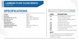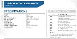 {"id":6080670040223,"title":"Laminar Flow Clean Bench","handle":"laminar-flow-clean-bench","description":"\u003ch3\u003e\u003cspan style=\"text-decoration: underline;\"\u003eFeatures\u003c\/span\u003e\u003c\/h3\u003e\n\u003cul\u003e\n\u003cli\u003eScientific laminar flow clean benches can be found in all manner of research and manufacturing facilities\u003c\/li\u003e\n\u003cli\u003eTypically used in the electronic medical and pharmaceutical fields\u003c\/li\u003e\n\u003cli\u003eToughened glass 10mm thick side windows\u003c\/li\u003e\n\u003cli\u003eEasily replaceable prefilter grade G4\u003c\/li\u003e\n\u003cli\u003eHEPA filter EN1822 standard H14 quality\u003c\/li\u003e\n\u003cli\u003eUnits comply to U.S. standard 209 E class 100\u003c\/li\u003e\n\u003cli\u003eRobust mild steel construction with epoxy powder coated finish\u003c\/li\u003e\n\u003cli\u003eLighting t0 1000 lux\u003c\/li\u003e\n\u003cli\u003eControl panel with fan speed control and 10 amp plug socket\u003c\/li\u003e\n\u003cli\u003eDifferential pressure gauge to continually monitor filter condition\u003c\/li\u003e\n\u003cli\u003e\u003cspan\u003eAvailable with panelyte or stainless steel worktop\u003c\/span\u003e\u003c\/li\u003e\n\u003c\/ul\u003e\n\u003cp\u003e\u003cspan style=\"text-decoration: underline;\"\u003e\u003cstrong\u003eNote:\u003c\/strong\u003e\u003c\/span\u003e\u003c\/p\u003e\n\u003cul\u003e\n\u003cli\u003e\n\u003cspan style=\"text-decoration: underline;\"\u003e\u003c\/span\u003eThis primary function of a \u003cspan style=\"color: black;\" data-mce-fragment=\"1\" data-mce-style=\"color: black;\"\u003eLaminar\u003c\/span\u003e flow unit is to protect products from contamination during laboratory procedures \u003c\/li\u003e\n\u003cli\u003eThe clean bench provides a high quality environment within the work area for manipulating non-hazardous materials\u003c\/li\u003e\n\u003cli\u003eThese units are not capable of aerosol containment and are not suitable for handling toxic, infectious or sensitizing materials \u003c\/li\u003e\n\u003c\/ul\u003e","published_at":"2021-01-11T12:48:59+02:00","created_at":"2021-01-11T12:48:57+02:00","vendor":"Scientlab","type":"Hardware","tags":["4ft laminar flow","6ft laminar flow","804 laminar flow","805 laminar flow","806 laminar flow","807 laminar flow","Flow Clean Bench","Laminar flow","Laminar Flow Cabinets","Laminar flow clean bench","Laminar flow with differential pressure gauge","Laminar flow with panelyte worktop","Laminar flow with stainless steel worktop","Scientific laminar flow"],"price":0,"price_min":0,"price_max":0,"available":true,"price_varies":false,"compare_at_price":null,"compare_at_price_min":0,"compare_at_price_max":0,"compare_at_price_varies":false,"variants":[{"id":37531413381279,"title":"Default Title","option1":"Default Title","option2":null,"option3":null,"sku":"","requires_shipping":true,"taxable":true,"featured_image":null,"available":true,"name":"Laminar Flow Clean Bench","public_title":null,"options":["Default Title"],"price":0,"weight":0,"compare_at_price":null,"inventory_management":"shopify","barcode":"","requires_selling_plan":false,"selling_plan_allocations":[]}],"images":["\/\/selectech.co.za\/cdn\/shop\/products\/Laminar-Flow-Clean-Bench.jpg?v=1629720497","\/\/selectech.co.za\/cdn\/shop\/products\/LPF.png?v=1629720497","\/\/selectech.co.za\/cdn\/shop\/products\/L804.png?v=1629720497","\/\/selectech.co.za\/cdn\/shop\/products\/L805.png?v=1629720497","\/\/selectech.co.za\/cdn\/shop\/products\/L806.png?v=1629720497","\/\/selectech.co.za\/cdn\/shop\/products\/L807.png?v=1629720497"],"featured_image":"\/\/selectech.co.za\/cdn\/shop\/products\/Laminar-Flow-Clean-Bench.jpg?v=1629720497","options":["Title"],"media":[{"alt":null,"id":22930450284703,"position":1,"preview_image":{"aspect_ratio":1.0,"height":800,"width":800,"src":"\/\/selectech.co.za\/cdn\/shop\/products\/Laminar-Flow-Clean-Bench.jpg?v=1629720497"},"aspect_ratio":1.0,"height":800,"media_type":"image","src":"\/\/selectech.co.za\/cdn\/shop\/products\/Laminar-Flow-Clean-Bench.jpg?v=1629720497","width":800},{"alt":"Laminar Flow Clean Bench","id":13380896850079,"position":2,"preview_image":{"aspect_ratio":1.253,"height":490,"width":614,"src":"\/\/selectech.co.za\/cdn\/shop\/products\/LPF.png?v=1629720497"},"aspect_ratio":1.253,"height":490,"media_type":"image","src":"\/\/selectech.co.za\/cdn\/shop\/products\/LPF.png?v=1629720497","width":614},{"alt":"Laminar Flow Clean Bench","id":13380896882847,"position":3,"preview_image":{"aspect_ratio":1.946,"height":373,"width":726,"src":"\/\/selectech.co.za\/cdn\/shop\/products\/L804.png?v=1629720497"},"aspect_ratio":1.946,"height":373,"media_type":"image","src":"\/\/selectech.co.za\/cdn\/shop\/products\/L804.png?v=1629720497","width":726},{"alt":"Laminar Flow Clean Bench","id":13380896915615,"position":4,"preview_image":{"aspect_ratio":1.976,"height":371,"width":733,"src":"\/\/selectech.co.za\/cdn\/shop\/products\/L805.png?v=1629720497"},"aspect_ratio":1.976,"height":371,"media_type":"image","src":"\/\/selectech.co.za\/cdn\/shop\/products\/L805.png?v=1629720497","width":733},{"alt":"Laminar Flow Clean Bench","id":13380896948383,"position":5,"preview_image":{"aspect_ratio":2.016,"height":368,"width":742,"src":"\/\/selectech.co.za\/cdn\/shop\/products\/L806.png?v=1629720497"},"aspect_ratio":2.016,"height":368,"media_type":"image","src":"\/\/selectech.co.za\/cdn\/shop\/products\/L806.png?v=1629720497","width":742},{"alt":"Laminar Flow Clean Bench","id":13380896981151,"position":6,"preview_image":{"aspect_ratio":1.96,"height":372,"width":729,"src":"\/\/selectech.co.za\/cdn\/shop\/products\/L807.png?v=1629720497"},"aspect_ratio":1.96,"height":372,"media_type":"image","src":"\/\/selectech.co.za\/cdn\/shop\/products\/L807.png?v=1629720497","width":729}],"requires_selling_plan":false,"selling_plan_groups":[],"content":"\u003ch3\u003e\u003cspan style=\"text-decoration: underline;\"\u003eFeatures\u003c\/span\u003e\u003c\/h3\u003e\n\u003cul\u003e\n\u003cli\u003eScientific la