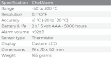 {"id":6059373953183,"title":"ChefAlarm professional cooking thermometer \u0026 timer","handle":"chefalarm®-thermometer-timer","description":"\u003ch3\u003e\u003cspan style=\"text-decoration: underline;\"\u003eDescription\u003c\/span\u003e\u003c\/h3\u003e\n\u003cul\u003e\n\u003cli\u003eInterchangeable NTC thermistor probes\u003c\/li\u003e\n\u003cli\u003eProgrammable high\/low alarm\u003c\/li\u003e\n\u003c\/ul\u003e\n\u003cp\u003eThe ChefAlarm is a professional cooking thermometer and timer which displays the countdown\/up time, current temperature and simultaneously displays both the high\/low alarms and max\/min temperatures.\u003c\/p\u003e\n\u003cp\u003eThe timer is fully programmable, allowing the user to set the countdown\/up time to\/from 99 hours and 59 minutes. The unit incorporates a large, easy to read LCD display with user selectable backlight and a loud audible alarm with adjustable volume to 92dB.\u003c\/p\u003e\n\u003cp\u003eThe ChefAlarm also includes a calibration function allowing the user to fine-tune the accuracy of the thermometer (±2.2 °C). The unit is housed in a water resistant casing and is designed to either sit on a worktop or attach to an appliance using the magnetic pads at the rear of the instrument.\u003c\/p\u003e\n\u003cp\u003eAvailable in three colours, each unit is supplied in a zip wallet complete with a penetration probe (810-071) and probe holder clip.\u003c\/p\u003e","published_at":"2021-01-05T11:36:56+02:00","created_at":"2021-01-05T11:36:55+02:00","vendor":"SelectTechWesbite","type":"Agriculture","tags":["Oven\/cooking thermometer","professional cooking thermometer","Thermometer","Thermometer \u0026 Timer","Timer","Timers"],"price":0,"price_min":0,"price_max":0,"available":true,"price_varies":false,"compare_at_price":null,"compare_at_price_min":0,"compare_at_price_max":0,"compare_at_price_varies":false,"variants":[{"id":37466263093407,"title":"Default Title","option1":"Default Title","option2":null,"option3":null,"sku":"","requires_shipping":true,"taxable":true,"featured_image":null,"available":true,"name":"ChefAlarm professional cooking thermometer \u0026 timer","public_title":null,"options":["Default Title"],"price":0,"weight":0,"compare_at_price":null,"inventory_management":"shopify","barcode":"","requires_selling_plan":false,"selling_plan_allocations":[]}],"images":["\/\/selectech.co.za\/cdn\/shop\/products\/ChefAlarm_professional2.jpg?v=1627646343","\/\/selectech.co.za\/cdn\/shop\/products\/ChefAlarm_professional1.jpg?v=1627646343","\/\/selectech.co.za\/cdn\/shop\/products\/CHEFALARM_THERMOMETER_TIMER.png?v=1627646343","\/\/selectech.co.za\/cdn\/shop\/products\/CHEFALARM_THERMOMETER_TIMER_1.png?v=1627646343"],"featured_image":"\/\/selectech.co.za\/cdn\/shop\/products\/ChefAlarm_professional2.jpg?v=1627646343","options":["Title"],"media":[{"alt":null,"id":22560930889887,"position":1,"preview_image":{"aspect_ratio":1.0,"height":700,"width":700,"src":"\/\/selectech.co.za\/cdn\/shop\/products\/ChefAlarm_professional2.jpg?v=1627646343"},"aspect_ratio":1.0,"height":700,"media_type":"image","src":"\/\/selectech.co.za\/cdn\/shop\/products\/ChefAlarm_professional2.jpg?v=1627646343","width":700},{"alt":null,"id":22560930922655,"position":2,"preview_image":{"aspect_ratio":1.0,"height":700,"width":700,"src":"\/\/selectech.co.za\/cdn\/shop\/products\/ChefAlarm_professional1.jpg?v=1627646343"},"aspect_ratio":1.0,"height":700,"media_type":"image","src":"\/\/selectech.co.za\/cdn\/shop\/products\/ChefAlarm_professional1.jpg?v=1627646343","width":700},{"alt":"CHEFALARM® THERMOMETER \u0026 TIMER","id":13270999400607,"position":3,"preview_image":{"aspect_ratio":1.007,"height":269,"width":271,"src":"\/\/selectech.co.za\/cdn\/shop\/products\/CHEFALARM_THERMOMETER_TIMER.png?v=1627646343"},"aspect_ratio":1.007,"height":269,"media_type":"image","src":"\/\/selectech.co.za\/cdn\/shop\/products\/CHEFALARM_THERMOMETER_TIMER.png?v=1627646343","width":271},{"alt":"CHEFALARM® THERMOMETER \u0026 TIMER","id":13270999433375,"position":4,"preview_image":{"aspect_ratio":1.941,"height":119,"width":231,"src":"\/\/selectech.co.za\/cdn\/shop\/products\/CHEFALARM_THERMOMETER_TIMER_1.png?v=1627646343"},"aspect_ratio":1.941,"height":119,"media_type":"image","src":"\/\/selectech.co.za\/cdn\/shop\/products\/CHEFALARM_THERMOMETER_TIMER_1.png?v=1627646343","width":231}],"requires_selling_plan":false,"selling_plan_groups":[],"content":"\u003ch3\u003e\u003cspan style=\"text-decoration: underline;\"\u003eDescription\u003c\/span\u003e\u003c\/h3\u003e\n\u003cul\u003e\n\u003cli\u003eInterchangeable NTC thermistor probes\u003c\/li\u003e\n\u003cli\u003eProgrammable high\/low alarm\u003c\/li\u003e\n\u003c\/ul\u003e\n\u003cp\u003eThe ChefAlarm is a professional cooking thermometer and timer which displays the countdown\/up time, current temperature and simultaneously displays both the high\/low alarms and max\/min temperatures.\u003c\/p\u003e\n\u003cp\u003eThe timer is fully programmable, allowing the user to set the countdown\/up time to\/from 99 hours and 59 minutes. The unit incorporates a large, easy to read LCD display with user selectable backlight and a loud audible alarm with adjustable volume to 92dB.\u003c\/p\u003e\n\u003cp\u003eThe ChefAlarm also includes a calibration function allowing the user to fine-tune the accuracy of the thermometer (±2.2 °C). The unit is housed in a water resistant casing and is designed to either sit on a worktop or attach to an appliance using the magnetic pads at the rear of the instrument.\u003c\/p\u003e\n\u003cp\u003eAvailable in three colours, each unit is supplied in a zip wallet complete with a penetration probe (810-071) and probe holder clip.\u003c\/p\u003e"}