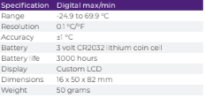 {"id":6055532429471,"title":"Digital alarm thermometer ( Max\/Min)","handle":"digital-max-min-thermometer","description":"\u003ch3\u003e\u003cspan style=\"text-decoration: underline;\"\u003eDescription\u003c\/span\u003e\u003c\/h3\u003e\n\u003cul\u003e\n\u003cli\u003eInternal sensor \u0026amp; external temperature probe\u003c\/li\u003e\n\u003cli\u003eProgrammable high\/low audible alarm\u003c\/li\u003e\n\u003c\/ul\u003e\n\u003cp\u003eThis max\/min and alarm thermometer indicates temperature over the range of -24.9 to 69.9 °C with a resolution of 0.1 °C\/°F and an accuracy of ±1 °C.\u003cbr\u003e\u003c\/p\u003e\n\u003cp\u003eThe thermometer features a large, easy to read LCD display, max\/min memory function to record the highest and lowest temperatures and a high\/low programmable audible alarm. The unit incorporates two temperature sensors, a remote water resistant probe with one metre PVC lead for the appliance temperature and an internal sensor for the room temperature.\u003cbr\u003e\u003c\/p\u003e\n\u003cp\u003eThe remote probe can be mounted onto a wall using the suction pad or mounting bracket supplied. Housed in a durable ABS case the thermometer incorporates a foot-stand for shelf mounting.\u003c\/p\u003e","published_at":"2021-01-04T12:04:08+02:00","created_at":"2021-01-04T12:04:06+02:00","vendor":"SelectTechWesbite","type":"","tags":["Digital alarm thermometer","Digital Thermometer","Thermometer","Thermometers"],"price":0,"price_min":0,"price_max":0,"available":true,"price_varies":false,"compare_at_price":null,"compare_at_price_min":0,"compare_at_price_max":0,"compare_at_price_varies":false,"variants":[{"id":37454802387103,"title":"Default Title","option1":"Default Title","option2":null,"option3":null,"sku":"","requires_shipping":true,"taxable":true,"featured_image":null,"available":true,"name":"Digital alarm thermometer ( Max\/Min)","public_title":null,"options":["Default Title"],"price":0,"weight":0,"compare_at_price":null,"inventory_management":"shopify","barcode":"","requires_selling_plan":false,"selling_plan_allocations":[]}],"images":["\/\/selectech.co.za\/cdn\/shop\/products\/Digital-alarm-thermometer.jpg?v=1627811410","\/\/selectech.co.za\/cdn\/shop\/products\/DIGITALMAXMINTHERMOMETER.png?v=1627811410","\/\/selectech.co.za\/cdn\/shop\/products\/DIGITALMAXMINTHERMOMETER.jpg?v=1627811410"],"featured_image":"\/\/selectech.co.za\/cdn\/shop\/products\/Digital-alarm-thermometer.jpg?v=1627811410","options":["Title"],"media":[{"alt":null,"id":22583351902367,"position":1,"preview_image":{"aspect_ratio":1.0,"height":600,"width":600,"src":"\/\/selectech.co.za\/cdn\/shop\/products\/Digital-alarm-thermometer.jpg?v=1627811410"},"aspect_ratio":1.0,"height":600,"media_type":"image","src":"\/\/selectech.co.za\/cdn\/shop\/products\/Digital-alarm-thermometer.jpg?v=1627811410","width":600},{"alt":"DIGITAL MAX\/MIN THERMOMETER","id":13251224371359,"position":2,"preview_image":{"aspect_ratio":2.09,"height":111,"width":232,"src":"\/\/selectech.co.za\/cdn\/shop\/products\/DIGITALMAXMINTHERMOMETER.png?v=1627811410"},"aspect_ratio":2.09,"height":111,"media_type":"image","src":"\/\/selectech.co.za\/cdn\/shop\/products\/DIGITALMAXMINTHERMOMETER.png?v=1627811410","width":232},{"alt":"DIGITAL MAX\/MIN THERMOMETER","id":13251224338591,"position":3,"preview_image":{"aspect_ratio":1.0,"height":458,"width":458,"src":"\/\/selectech.co.za\/cdn\/shop\/products\/DIGITALMAXMINTHERMOMETER.jpg?v=1627811410"},"aspect_ratio":1.0,"height":458,"media_type":"image","src":"\/\/selectech.co.za\/cdn\/shop\/products\/DIGITALMAXMINTHERMOMETER.jpg?v=1627811410","width":458}],"requires_selling_plan":false,"selling_plan_groups":[],"content":"\u003ch3\u003e\u003cspan style=\"text-decoration: underline;\"\u003eDescription\u003c\/span\u003e\u003c\/h3\u003e\n\u003cul\u003e\n\u003cli\u003eInternal sensor \u0026amp; external temperature probe\u003c\/li\u003e\n\u003cli\u003eProgrammable high\/low audible alarm\u003c\/li\u003e\n\u003c\/ul\u003e\n\u003cp\u003eThis max\/min and alarm thermometer indicates temperature over the range of -24.9 to 69.9 °C with a resolution of 0.1 °C\/°F and an accuracy of ±1 °C.\u003cbr\u003e\u003c\/p\u003e\n\u003cp\u003eThe thermometer features a large, easy to read LCD display, max\/min memory function to record the highest and lowest temperatures and a high\/low programmable audible alarm. The unit incorporates two temperature sensors, a remote water resistant probe with one metre PVC lead for the appliance temperature and an internal sensor for the room temperature.\u003cbr\u003e\u003c\/p\u003e\n\u003cp\u003eThe remote probe can be mounted onto a wall using the suction pad or mounting bracket supplied. Housed in a durable ABS case the thermometer incorporates a foot-stand for shelf mounting.\u003c\/p\u003e"}
