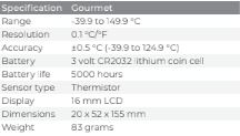 {"id":6062395162783,"title":"Gourmet thermometer - water resistant thermometer with folding probe","handle":"gourmet-thermometer-water-resistant-thermometer-with-folding-probe","description":"\u003ch3\u003e\u003cspan style=\"text-decoration: underline;\"\u003eDescription\u003c\/span\u003e\u003c\/h3\u003e\n\u003cul\u003e\n\u003cli\u003eWater resistant with folding probe\u003c\/li\u003e\n\u003cli\u003eAccuracy of ±0.5 °C\u003c\/li\u003e\n\u003c\/ul\u003e\n\u003cp\u003e\u003cimg alt=\"\" src=\"https:\/\/cdn.shopify.com\/s\/files\/1\/0450\/0992\/8351\/files\/thermo-use_480x480.jpg?v=1651568629\"\u003e\u003c\/p\u003e\n\u003cp\u003eThe Gourmet folding probe thermometer is an easy to use instrument, ideal for monitoring cooking, cooling and food holding temperatures as part of HACCP and\u003cbr\u003ehealth and safety procedures. The unit incorporates two moulded push buttons (on\/off and hold) and a CalCheck function that allows the user to verify the accuracy of the thermometer at any time.\u003cbr\u003e\u003c\/p\u003e\n\u003cp\u003eEach unit incorporates a stainless steel, penetration probe (Ø3.5 x 110 mm) that conveniently folds back into the side of the instrument when not in use. The housing includes Biomaster Antimicrobial Technology that reduces bacterial growth. Available in six colours, ideal for different food types or preparation areas.\u003c\/p\u003e","published_at":"2021-01-06T09:46:25+02:00","created_at":"2021-01-06T09:39:43+02:00","vendor":"SelectTechWesbite","type":"Agriculture","tags":["Digital Thermometer","Ethiopia","Thermometer","Thermometers","Water resistant thermometer"],"price":0,"price_min":0,"price_max":0,"available":true,"price_varies":false,"compare_at_price":null,"compare_at_price_min":0,"compare_at_price_max":0,"compare_at_price_varies":false,"variants":[{"id":37476631249055,"title":"Default Title","option1":"Default Title","option2":null,"option3":null,"sku":"","requires_shipping":true,"taxable":true,"featured_image":null,"available":true,"name":"Gourmet thermometer - water resistant thermometer with folding probe","public_title":null,"options":["Default Title"],"price":0,"weight":0,"compare_at_price":null,"inventory_management":"shopify","barcode":"","requires_selling_plan":false,"selling_plan_allocations":[]}],"images":["\/\/selectech.co.za\/cdn\/shop\/products\/Gourmet-thermometer.jpg?v=1651566659","\/\/selectech.co.za\/cdn\/shop\/products\/Gourmet-thermometer2.jpg?v=1651566659","\/\/selectech.co.za\/cdn\/shop\/products\/GOURMETTHERMOMETER_1.png?v=1651566659","\/\/selectech.co.za\/cdn\/shop\/products\/GOURMETTHERMOMETER.png?v=1651566659","\/\/selectech.co.za\/cdn\/shop\/products\/thermo-use.jpg?v=1651568610"],"featured_image":"\/\/selectech.co.za\/cdn\/shop\/products\/Gourmet-thermometer.jpg?v=1651566659","options":["Title"],"media":[{"alt":null,"id":25326190559391,"position":1,"preview_image":{"aspect_ratio":1.0,"height":500,"width":500,"src":"\/\/selectech.co.za\/cdn\/shop\/products\/Gourmet-thermometer.jpg?v=1651566659"},"aspect_ratio":1.0,"height":500,"media_type":"image","src":"\/\/selectech.co.za\/cdn\/shop\/products\/Gourmet-thermometer.jpg?v=1651566659","width":500},{"alt":null,"id":25326190526623,"position":2,"preview_image":{"aspect_ratio":1.0,"height":500,"width":500,"src":"\/\/selectech.co.za\/cdn\/shop\/products\/Gourmet-thermometer2.jpg?v=1651566659"},"aspect_ratio":1.0,"height":500,"media_type":"image","src":"\/\/selectech.co.za\/cdn\/shop\/products\/Gourmet-thermometer2.jpg?v=1651566659","width":500},{"alt":"GOURMET THERMOMETER","id":13291696816287,"position":3,"preview_image":{"aspect_ratio":0.831,"height":302,"width":251,"src":"\/\/selectech.co.za\/cdn\/shop\/products\/GOURMETTHERMOMETER_1.png?v=1651566659"},"aspect_ratio":0.831,"height":302,"media_type":"image","src":"\/\/selectech.co.za\/cdn\/shop\/products\/GOURMETTHERMOMETER_1.png?v=1651566659","width":251},{"alt":"GOURMET THERMOMETER","id":13291696849055,"position":4,"preview_image":{"aspect_ratio":1.756,"height":123,"width":216,"src":"\/\/selectech.co.za\/cdn\/shop\/products\/GOURMETTHERMOMETER.png?v=1651566659"},"aspect_ratio":1.756,"height":123,"media_type":"image","src":"\/\/selectech.co.za\/cdn\/shop\/products\/GOURMETTHERMOMETER.png?v=1651566659","width":216},{"alt":null,"id":25326398898335,"position":5,"preview_image":{"aspect_ratio":1.0,"height":600,"width":600,"src":"\/\/selectech.co.za\/cdn\/shop\/products\/thermo-use.jpg?v=1651568610"},"aspect_ratio":1.0,"height":600,"media_type":"image","src":"\/\/selectech.co.za\/cdn\/shop\/products\/thermo-use.jpg?v=1651568610","width":600}],"requires_selling_plan":false,"selling_plan_groups":[],"content":"\u003ch3\u003e\u003cspan style=\"text-decoration: underline;\"\u003eDescription\u003c\/span\u003e\u003c\/h3\u003e\n\u003cul\u003e\n\u003cli\u003eWater resistant with folding probe\u003c\/li\u003e\n\u003cli\u003eAccuracy of ±0.5 °C\u003c\/li\u003e\n\u003c\/ul\u003e\n\u003cp\u003e\u003cimg alt=\"\" src=\"https:\/\/cdn.shopify.com\/s\/files\/1\/0450\/0992\/8351\/files\/thermo-use_480x480.jpg?v=1651568629\"\u003e\u003c\/p\u003e\n\u003cp\u003eThe Gourmet folding probe thermometer is an easy to use instrument, ideal for monitoring cooking, cooling and food holding temperatures as part of HACCP and\u003cbr\u003ehealth and safety procedures. The unit incorporates two moulded push buttons (on\/off and hold) and a CalCheck function that allows the user to verify the accuracy of the thermometer at any time.\u003cbr\u003e\u003c\/p\u003e\n\u003cp\u003eEach unit incorporates a stainless steel, penetration probe (Ø3.5 x 110 mm) that conveniently folds back into the side of the instrument when not in use. The housing includes Biomaster Antimicrobial Technology that reduces bacterial growth. Available in six colours, ideal for different food types or preparation areas.\u003c\/p\u003e"}
